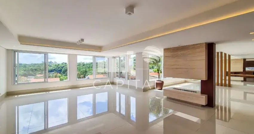 Com uma área total de 450 m², essa residência com amplo living, lareira, sala de jantar, cozinha completa e equipada, possui 4 dormitórios, sendo 4 suítes, a master tendo o banheiro uma jacuzzi com linda vista e 6 banheiros, escritório , todos os ambientes com ar condicionado e muitos armários, proporcionando conforto e privacidade.