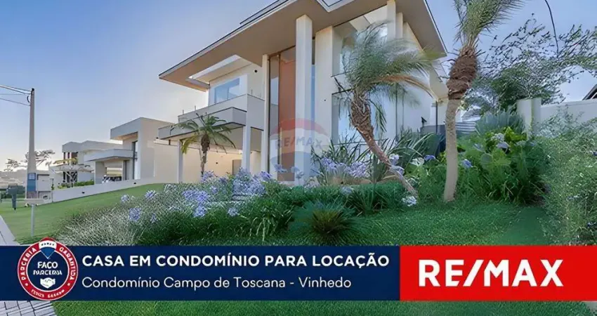 Casa para locação em Vinhedo SP. Seu novo lar aguarda por você em um cenário deslumbrante no condomínio clube de Campo de Toscana. Esta magnífica residência de 4 quartos, sendo 3 suítes, foi meticulosamente projetada para oferecer o máximo em conforto e estilo de vida.Destaques:Espaço e Elegância: Com seus 4 quartos, esta casa proporciona amplo espaço para toda a família. Cada detalhe foi cuidadosamente planejado, desde o escritório para trabalhar em casa até os imóveis planejados que agregam um toque de sofisticação a todos os ambientes.Entretenimento Exclusivo: Celebre momentos especiais na churrasqueira integrada, perfeita para reuniões animadas com amigos e familiares. A piscina com spa oferece um oásis de relaxamento, enquanto a sauna proporciona o toque final de indulgência.Vista Privilegiada: Desfrute de um espetáculo diário com a deslumbrante vista para o pôr do sol. Cada dia é uma obra de arte na natureza, e esta casa permite que você aprecie esse espetáculo de uma perspectiva única.Motivos para Adquirir Esta Residência:Localização Exclusiva: Situada em um condomínio clube renomado, a propriedade oferece segurança, infraestrutura e um ambiente tranquilo, ideal para quem busca qualidade de vida.Acabamentos de Alta Qualidade: Cada cômodo é um reflexo do cuidado e atenção aos detalhes, com móveis planejados que unem funcionalidade e estética.Lazer Inigualável: A churrasqueira, piscina, spa e sauna transformam sua casa em um verdadeiro refúgio, proporcionando experiências únicas para você e seus convidados.Não perca a oportunidade de viver em uma casa que reúne luxo, conforto e natureza. Agende uma visita agora e descubra o seu novo lar em Campo de Toscana!
