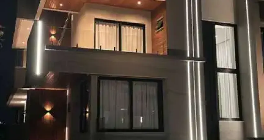 Características do imóvel: Casa nova, recém-construída Alto padrão de acabamento, com 3 pavimentos e pé-direito duplo 4 suítes amplas 1 quarto adicional com banheiro ao lado 2 lavabos Área Gourmet completa, voltada para mata Piscina com hidromassagem aquecida Garagem para até 6 carros