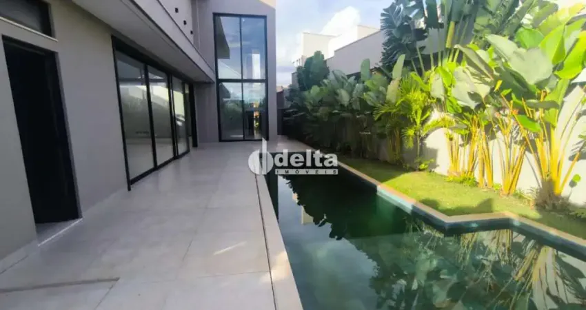 Casa nova 1ª locação. Estilo sobrado em condomínio fechado sendo 5 quartos, 4 suítes (1 suíte master), 2 suítes comuns, 1 semi suíte, 1 suíte no térreo reversível para home office, escritório, sala de tv e sala de jantar, pé direito duplo de 6,70m, elevador, cozinha integrada e planejada com armários, despensa, lavanderia separada, piscina, ducha, jardim, piso porcelanato, 4 vagas de garagem, 1ª locação.