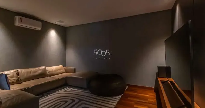 5 suítes sendo 1 master, todas com ar condicionado, salas de estar e jantar integradas, home, lavabo, cozinha com ilha, despensa, área de serviço e lavanderia, suíte de serviço, sauna e piscina.