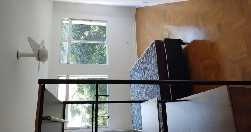 Studio semi imobiliado com 29,70m amp;sup2; na Vila Buarque, pr amp;oacute;ximo ao Mackenzie e da Santa Casa. Com cama box de casal, arara, arm amp;aacute;rio de cozinha, cooktop el amp;eacute;trico, m amp;aacute;quina de lava e seca, banheiro com box de vidro, cuba de apoio, espelho e vidro para ventila amp;ccedil; amp;atilde;o natural.