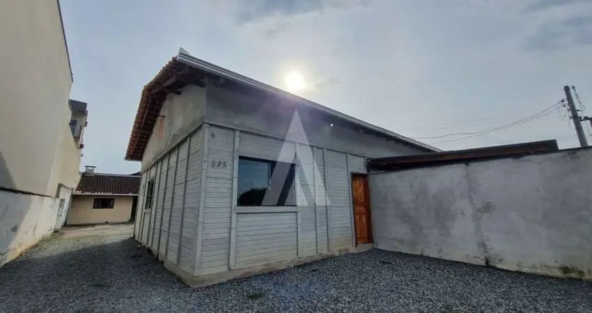 Casa residencial com 2 quartos e 1 vaga de garagem no Bairro Iririu. com sala de estar e jantar, cozinha e 1 banheiro social, ideal para você que busca praticidade e simplicidade no dia a dia e ilumindo pelo sol da manhã