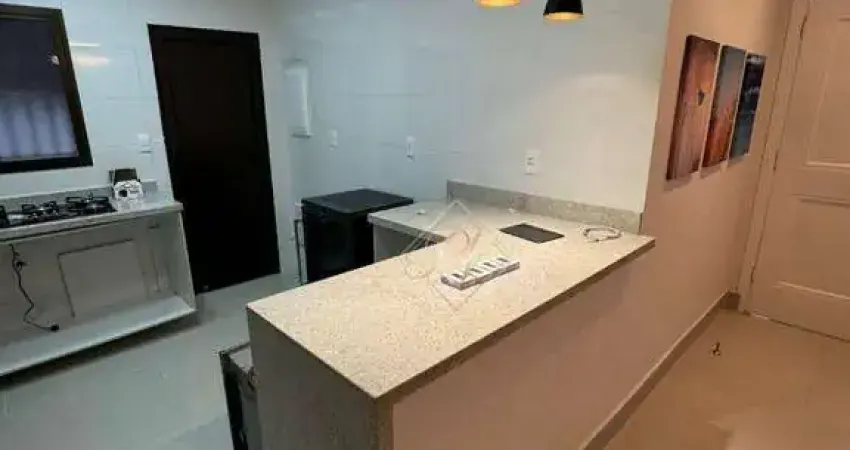 - Sala dois ambientes com cozinha integrada estilo americana;