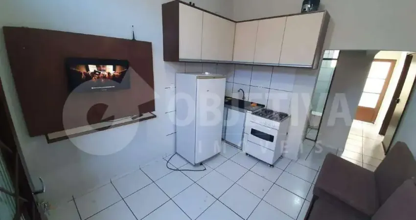Casa mobiliada disponível para aluguel no bairro Martins, com 45 m² de área construída, oferecendo ambientes bem distribuídos e funcionais. O imóvel conta com sala equipada com sofá, painel e televisão, integrada à cozinha, que dispõe de geladeira, fogão e micro-ondas. Possui banheiro social com box, dois quartos com armários planejados, sendo um deles mobiliado com cama de solteiro, além de área de serviço. O imóvel não possui vaga de garagem.