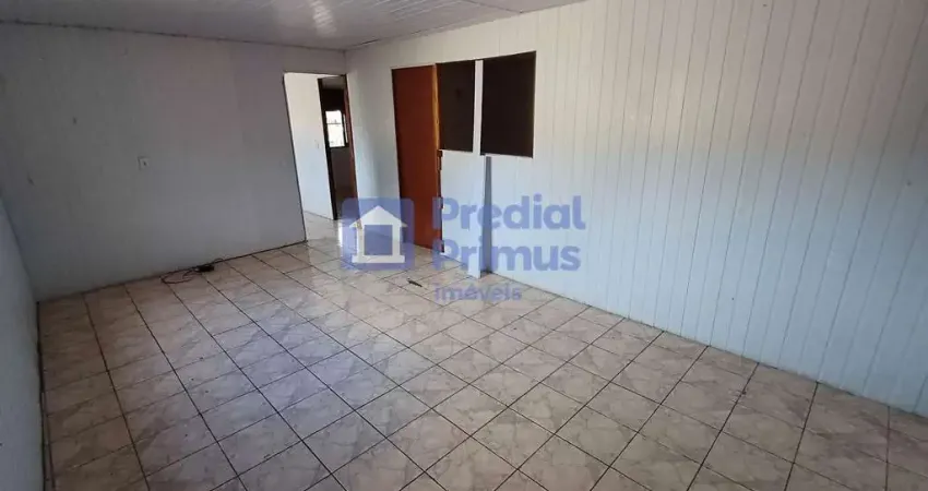 Sobrado com 2 quartos, sala, cozinha, banheiro, área de serviço e varanda.