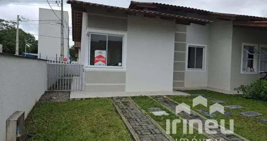 Casa residencial em condomínio fechado para locação no bairro Ponto Alto, em Araquari. O imóvel dispõe de 2 quartos, sala e cozinha conjugadas, 1 banheiro, lavanderia, 1 vaga de garagem descoberta, jardim, piscina, salão de festas e guarita. Está muito bem localizado, próximo a mercados e empresas, com fácil acesso à BR-101 e à BR-280. Agende um horário com um de nossos atendentes e realize seu sonho!