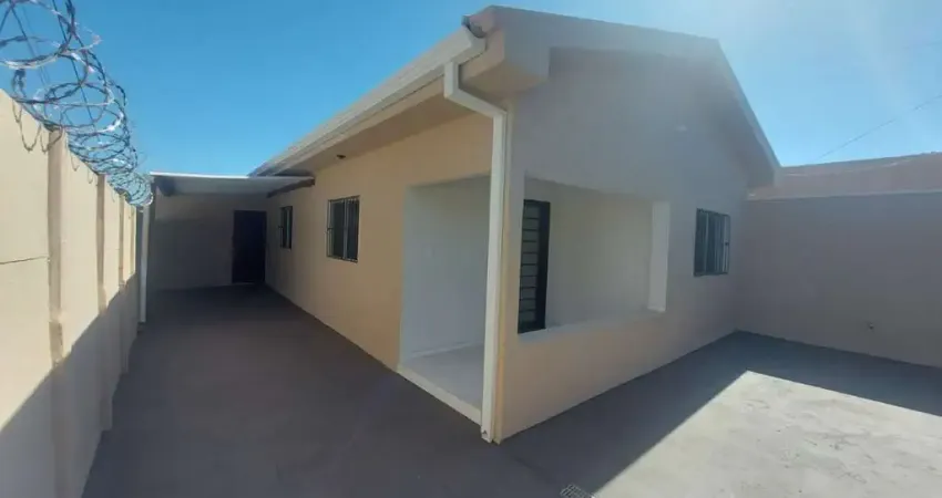 Casa com aproximadamente 100 m² de área construída, sendo sala de visita, sala de jantar, 03 quartos, banheiro social com box, cozinha com armário sob a pia, área de serviço coberta e garagem para 02 carros.