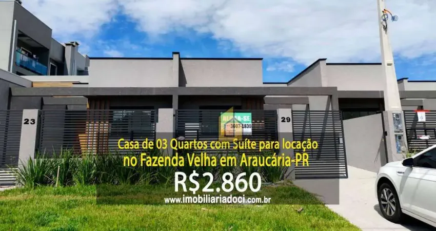 Casa de 03 Quartos com Suíte no Fazenda Velha em Araucária-PR - Locação por R$2.860,00