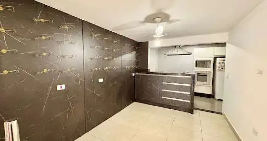 Cozinha completa com armários, geladeira, forno, micro-ondas, cooktop com exaustor