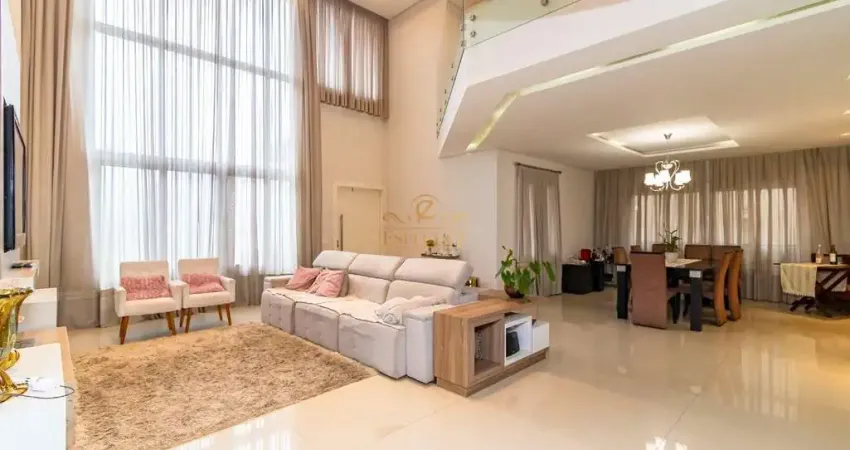 A casa com dois andares e 396m² úteis, apresenta uma linda sala ampla com pé direito alto, sala de jantar e sala de televisão, além de um lavabo. A cozinha planejada é um espaço que combina funcionalidade e estética de forma harmoniosa, convidando ao preparo de refeições e à convivência. No andar de cima, 3 suítes com armários planejados, sendo a suíte master com sacada, amplo closet e hidro, completam esse majestoso imóvel! A casa possui também 4 vagas de garagem, sendo 2 cobertas, além de sistema de câmeras e segurança eletrônica.