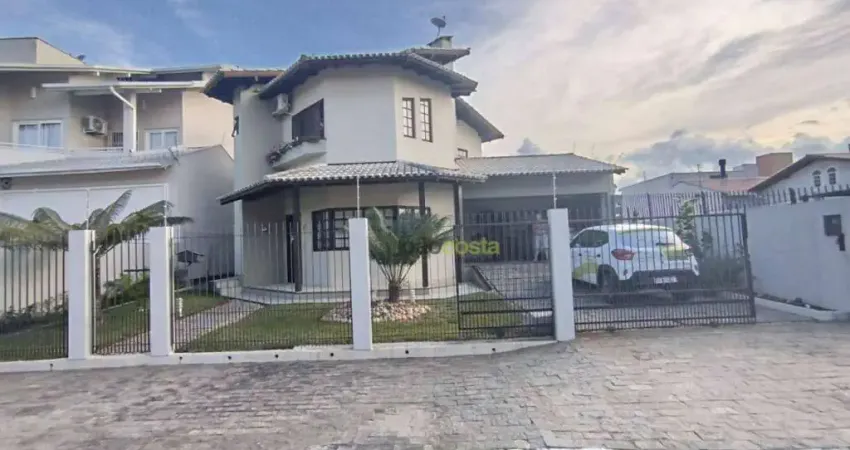 Excelente casa com 02 andares, 03 quartos, 01 suíte, 04 salas, 03 banheiros, 02 áreas com churrasqueiras, a casa está em excelente estado de conservação, toda mobiliada, fica em uma área nobre no Centro de Palhoça, com piscina, um imenso jardim, próximo da Br-101, excelente localização, próximo de atacados, farmácias, escolas, bancos, restaurantes, peixaria e todo o comércio em geral.