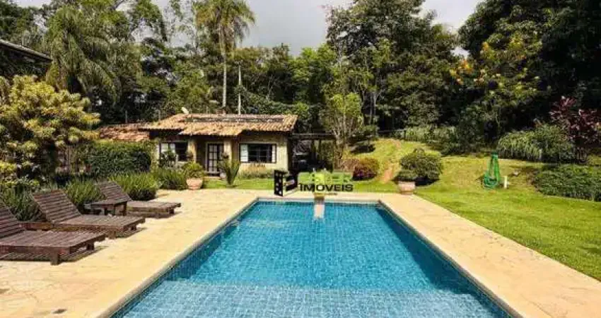 Conta ainda com garagem coberta para dois carros e uma casa independente para caseiro ou hóspedes, completa e aconchegante.