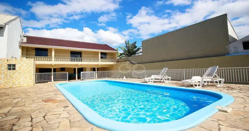 Sobrado com piscina, 04 quartos, 02 salas, cozinha, 02 banheiros, churrasqueira e garagem para 03 carros.