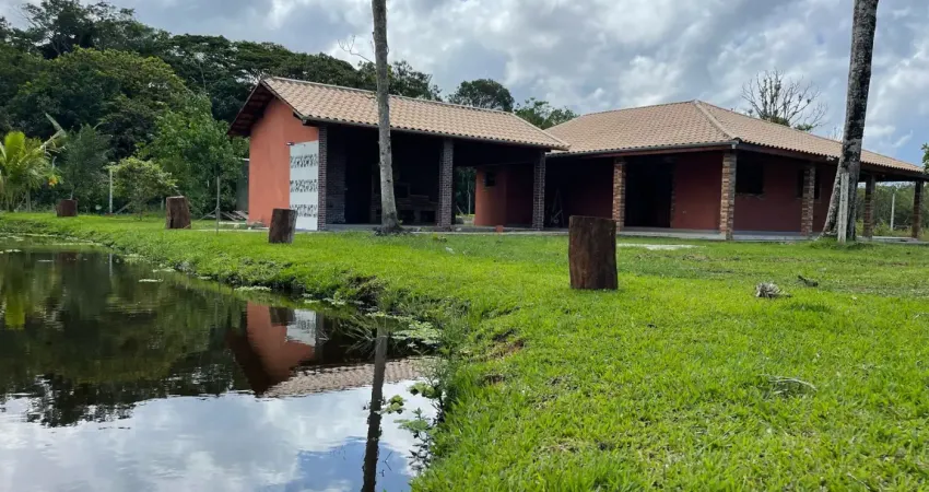 Chácara com 2 quartos, área gourmet e lago em itanhaém.