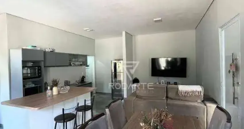 Casa principal com 2 quartos, sendo 1 suite. Sala e cozinha integradas.