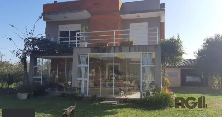 Belíssimo sítio de Lazer/Moradia na Zona Sul, COM HABITE-SE. Terreno de 1000m2 com Sobrado 170m2 arquitetura moderna e ótimo padrão de acabamento. Pavimento superior com 3 dormitórios, sendo 1 suíte com closet e hidro, mais 1 banheiro social e 1 ampla sacada na frente. Térreo com living, jantar e cozinha integrados, lareira, churrasqueira e fogão campeiro, lavabo, despensa e área de serviço fechada. Oferece também um belo avarandado todo envidraçado, sendo um ótimo espaço para eventos e reuniões familiares. Pátio com belo paisagismo e piscina 8X4. Aos fundos uma construção que pode ser usada como casa auxiliar e em anexo um garagem coberta para 2 carros e churrasqueira, com cerca de 80m2. ANALISA DAÇÃO, CARRO E PARCELAMENTO DIRETO. ACEITA FINANCIAMENTO. Estudamos seu imóvel no negócio. Além deste, mais de 25 mil opções em nosso site.