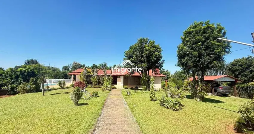 Belíssima chácara localizada em área urbana na Linha João Alves, acesso asfaltado, com 3.251m² e uma casa de 03 dormitórios, 02 banheiros, sala de estar, sala de jantar, cozinha, churrasqueira, piscina, área de serviço, despensa, espaço gourmet, árvores frutíferas, horta.