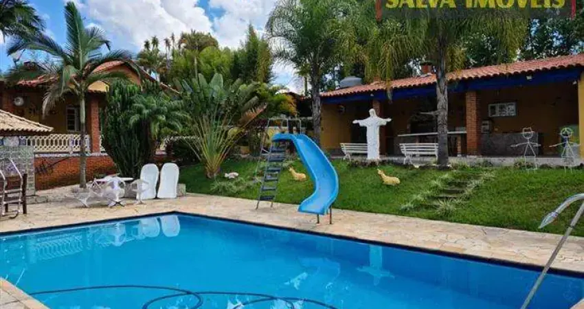 Linda chácara com 5000m2, de terreno 300m2, de área construída casa com 3 dormitórios, sala com lareira dois ambientes, cozinha, lavanderia coberta, casa de caseiro, canil, playgraud, salão de jogos, campo de futebol todo telado, área gormet, piscina, sauna, dek, quiosque com vista privilegiada, casa na árvore, pomar, garagem coberta para 2 carros.