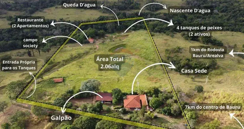Área Rural com 2,06 alqueires (aprox. 5 hectares) Potencial Comercial Pesqueiro, Restaurante e Lazer 2,06 Alqueires Próx. ao LEB e Centro de Bauru, apenas 7 km do Centro de Bauru