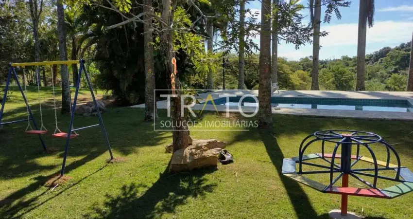 Chácara à venda em Sousas - Campinas em Condomínio fechado. Venha morar num paraíso cercado de exuberante natureza, com conforto e qualidade de vida! Ruas pavimentadas, 20.025 m² de terreno. Privacidade e lazer para toda a família e amigos. Casa principal com 3 suítes – Sala integrando ambientes. Cozinha americana. Banheiro social, ampla varanda com espaço gourmet completo e lareira, área descoberta com seixo rolado, com fogo de chão e fonte com cascata de pedra, piscina em alvenaria com deck em pedra São Tomé, e ducha externa. Área de areia com 2 quiosques em sapê e 1 em telha, com área gourmet completa, com 2 wc e ducha externa.