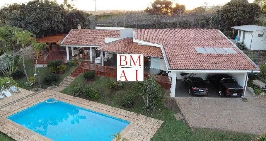 BELÍSSIMA CHÁCARA EM CONDOMÍNIO!!Casa com 380m com 3 suites, duas salas, duas cozinhas, 5 banheiros, lavanderia, Área gourmet com churrasqueira e cozinha completa, ar condicionado nos quartos e aquecimento solar.. Deck e Pergolado de madeira de lei, canil, campo de futebol, piscina 10x5, Pomar de frutas, jardinagem maravilhosa com Palmeiras Imperiais, e outras; toda gramada, lago interno de carpas abastecido por nascente natural... uma vista e paisagem maravilhosa...Segurança 24 hs, Área de mata preservada, Grandes Lagos com Pistas de CooperTerreno com 5.200m