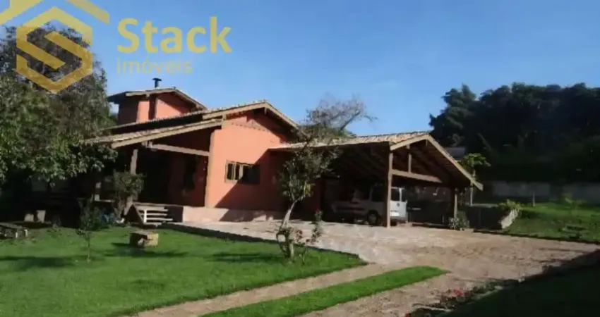 CASA MAIOR NO ALTO 270m² em estilo alemão, toda estrutura de vigas de madeira nobre, forro inclinado com pátina, estilo único, 3 dts (1 suíte com closet grande), 5 wcs, banheira hidro, dispensa, varanda coberta 40m²com deck de madeira mais 14m² de pergolado, pomar, canil/galinheiro grande, 3 salas: sala de estar grande com lareira, com portas de vidro para deck grande de madeira, sala de tv, sala grande para escritório/íntima, 2 jardins de inverno. Oficina grande isolada 18m², Aquecimento solar em 2 wcs