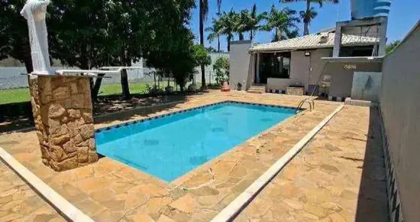 Casa toda avarandada com 3 dormitórios (sendo 3 suítes), sala de TV, cozinha, área serviço, área de churrasqueira, mesa de jogos, campo, piscina e estacionamento para vários carros.
