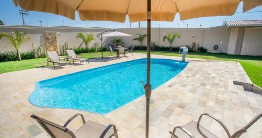A chácara possui piscina grande com 48.000 litros, quiosque com churrasqueira, fogão e forno à lenha, grama esmeralda por toda a extensão da chácara e caminhos com bloquetes. Lindo projeto paisagístico com palmeiras, fênix, dentre outras plantas.
