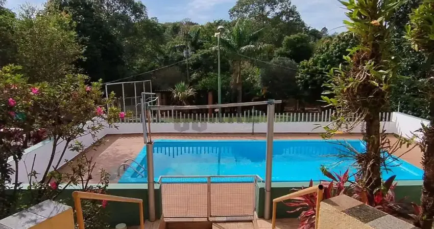 Chácara com 140 metros quadrados de construção, em um terreno de 1.050 metros quadrados. O imóvel conta com três quartos, sendo dois deles suítes, além de um escritório e uma varanda ampla equipada com churrasqueira e fogão a lenha. A área de lazer possui piscina de 7 por 3 metros e um campo de tamanho médio, ideal para momentos em família ou com amigos.