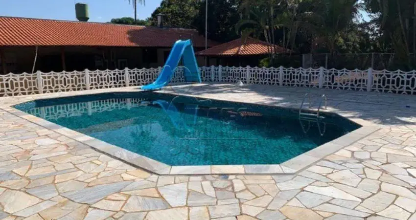 Chácara em ótima localização, 3 dormitórios sendo 1 suíte, sala ampla, banheiro social, cozinha, área de serviços, espaço gourmet com churrasqueira, piscina, campo de futebol e pomar, casa de caseiro e várias vagas de garagem.