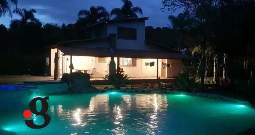 5.620 m² de terreno | 3 dormitórios (1 suíte) | Piscina 12x12 com hidromassagem | 4 chalés em fase de acabamento | Mina d’água | Poço semiartesiano