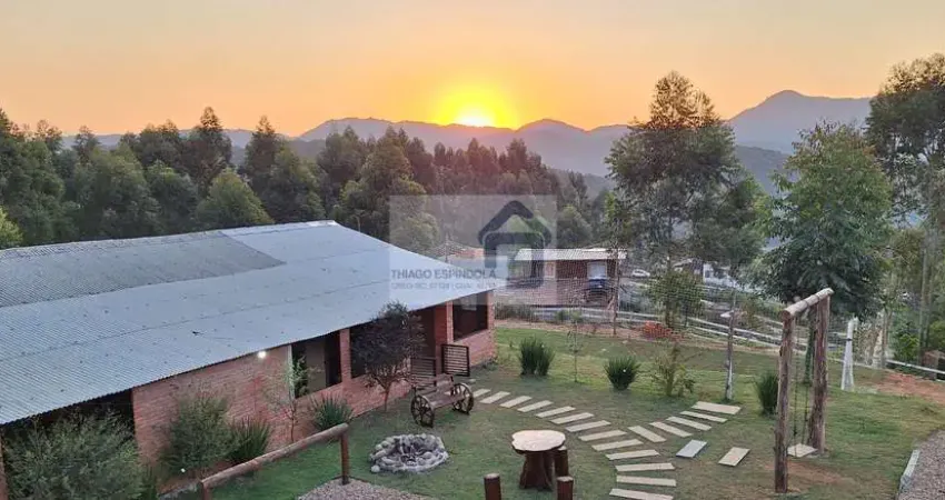 Possui também uma casa/ rancho de madeira contendo 03 (três) dormitórios, banheiro social, sala e cozinha integradas, além de uma ampla área coberta com churrasqueira e fogão a lenha, de onde é possível contemplar uma linda vista da morraria e apreciar o por do sol!