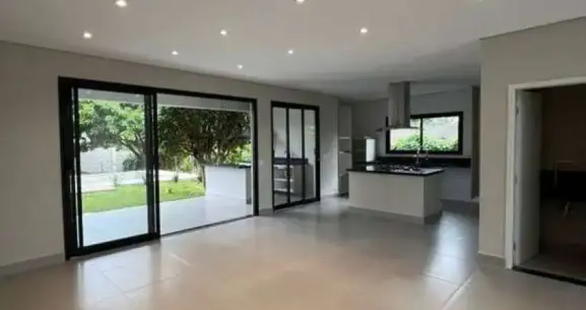 Casa térrea com 3 suítes, escritório, sala de estar com pé-direito duplo, sala de jantar, lavabo, cozinha americana com armário, coifa e cooktop.