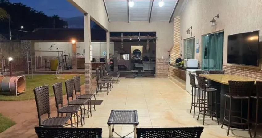 Chácara com 2.170m² de terreno e 183m² de área construída, com acabamento acima da média. Conta com casa ampla, sala para dois ambientes, 04 suítes com armários embutidos, cozinha, área de serviço, varanda e dependência completa. Área externa com piscina aquecida (2 bombas), poço artesiano, sistema de monitoramento, churrasqueira, banheiros externos masculino e feminino, depósitos, canil, galinheiro, pomar, playground, capela e estacionamento para 10 carros (2 vagas cobertas e 8 descobertas).