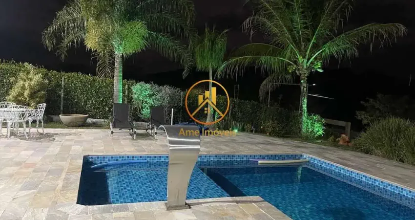 4 suítes | 300 m2 área construída | 1.900 m2 de terreno | Sala 2 ambientes | Cozinha gourmet integrada | Piscina aquecida com cascata e hidromassagem | Amplo espaço de lazer