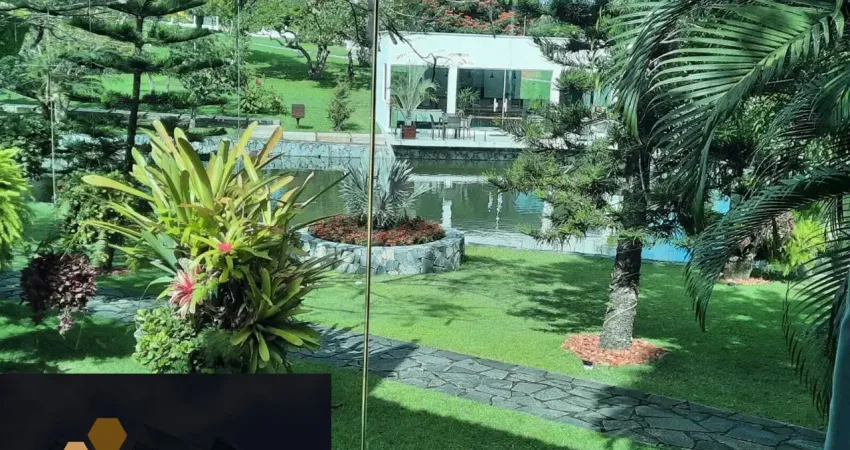 Casa com 4 suítes, uma das suítes com varanda e closet, outras duas com varanda; sala, cozinha, cozinha gourmet, jardim de inverno, terraço com vista para o lago, dependência de empregada com wc, área de serviço; casa de caseiro com 2 quartos, 3 canis, 3 baias, área para guardar objetos, academia. Área de lazer com piscina para adulto e criança, wc de apoio, área gourmet, salão de jogos, campo de futebol com refletor. Mais uma área de lazer independente climatizada, com varanda, de frente para o lago, mobiliada, com cervejeira, churrasqueira, tv e wc. Área total 10.000 m².