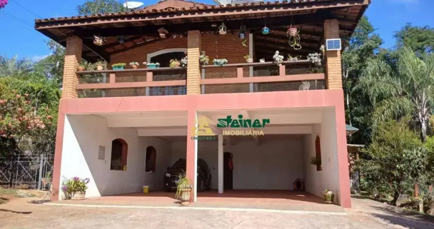 Excelente chácara com 1.487 m² de terreno e 313 m² de área construída. Casa principal ampla e avarandada com 3 dormitórios (1 suíte), sala espaçosa, cozinha grande, banheiro social e mais 1 suíte no térreo.