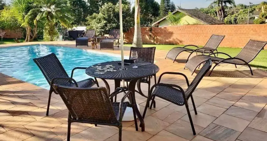 Com 04 dormitórios sendo 02 suítes 01 com closet, sala de estar; lavabo, sala de jantar, cozinha Integrada e planejada, despensa, espaço gourmet com WC, piscina, ducha, quintal gramado, canil, lavanderia, quarto e WC externo, pomar e 4 vagas de garagem sendo 02 cobertas.