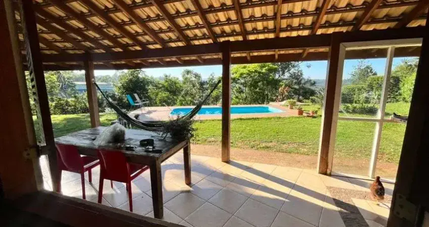 2.900m² de terreno com vista panorâmica, casa sede com 03 dormitórios, sendo 01 suíte, sala ampla, cozinha, casa toda avarandada, churrasqueira completa, piscina, pomar, horta, condominio com segurança 24 horas.