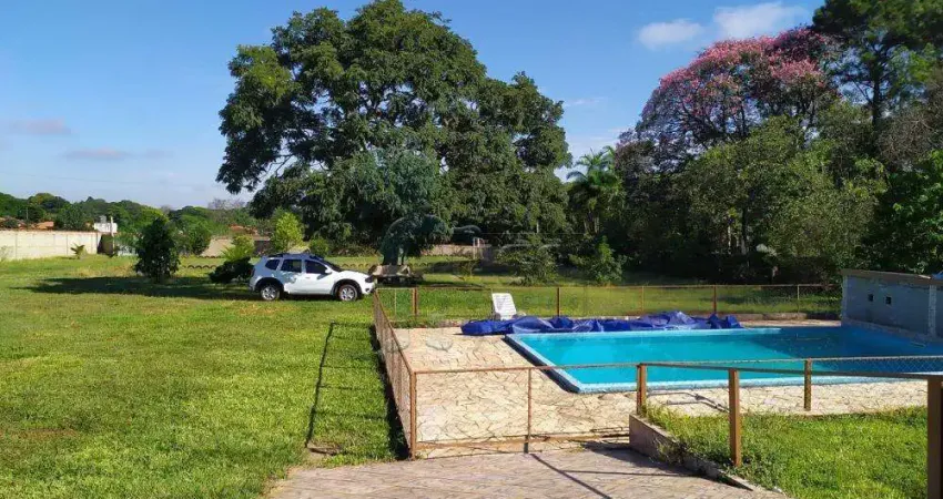 Chácara, 4 dormitórios sendo 2 suítes, sala ampla, banheiro social, cozinha, área de serviços, depósito, espaço gourmet com salão, 2 piscinas, campo de futebol e ampla área verde com várias vagas de garagem.