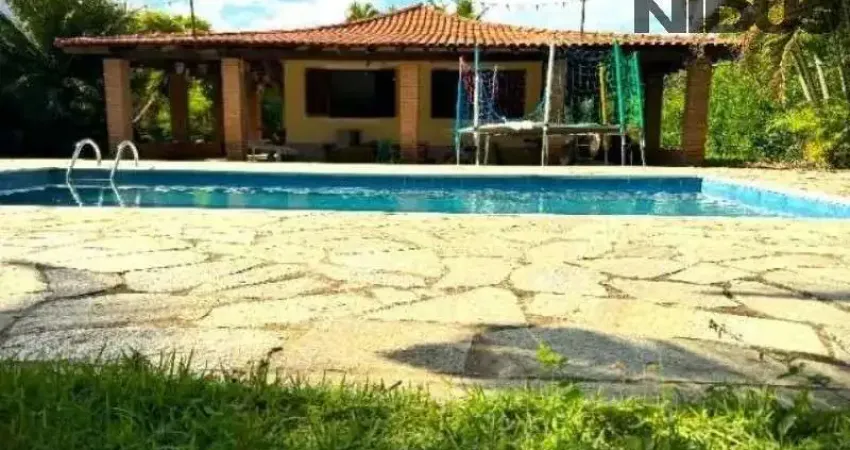 A casa conta com uma sala de estar aconchegante, sala de jantar, cozinha equipada, 4 quartos (sendo uma suíte e um quarto junto à área de churrasqueira), 2 banheiros, área gourmet externa, lavanderia externa, varanda em todas as 4 laterais, estacionamento para mais de 10 carros, capela, piscina, lago privado, árvores frutíferas e uma palmeira magnífica.