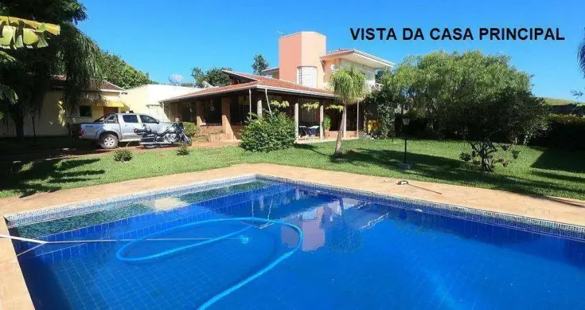 Belíssima chácara com 5 dormitórios, sendo todos com suítes e ar condicionado, possuí lago para pescaria, salão de festas, playground, capela e academia ao ar livre.