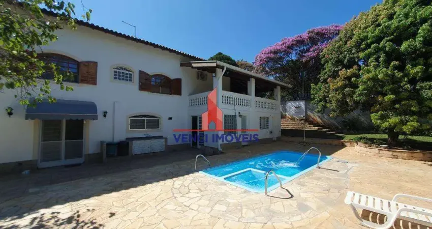 Chácara para venda em Valinhos! Seja bem vindo a esse pedacinho de paraíso, uma chácara localizada em uma região super valorizada da cidade, possui um terreno com 1.790 m² e uma área construída total de 593 m². Casa principal com ampla varanda, living para 2 ambientes e 4 suítes sendo uma com closet e ar-condicionado. Piso inferior com sala para 2 ambientes, uma suíte transformada em escritório, sala de jantar ampla com sala de TV integrada, despensa e banheiro, cozinha planejada e lavanderia isolada com armário. Parte externa com uma construção multiuso podendo ser uma oficina, ampla área verde com jardins e pomar, quartinho de ferramentas, poço artesiano e espaço para criação de animais, além de canil. O lazer é sensacional para encontros com familiares e amigos contendo espaço gourmet com churrasqueira e forno de pizza, tudo de frente para uma convidativa piscina! Garagem coberta para 3 veículos e várias vagas descobertas. Venha se encantar!