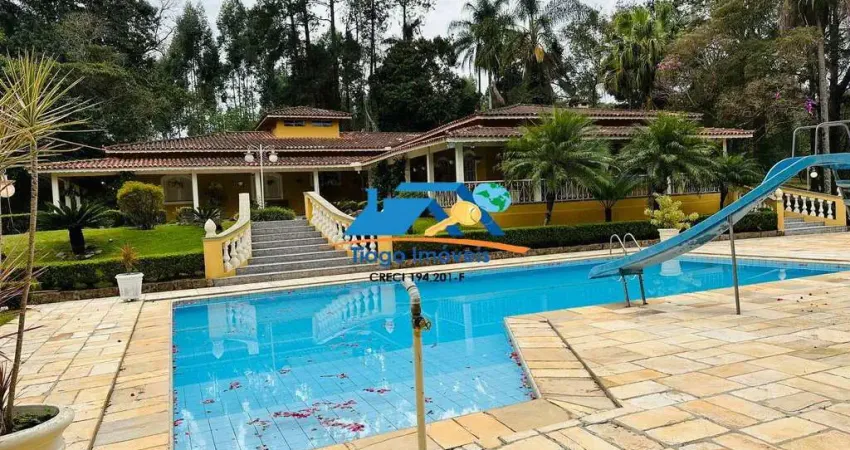 OPORTUNIDADE ÚNICA. Sítio com 3,5 Alqueires a 500 metros do asfalto. Casa Principal com 06 Suítes. Casa de hóspedes. 02 Casas de Caseiros. Lazer completo: Piscina, Bar,Quadra de tênis,Campo de Futebol,Lago,Bosque,Churrasqueira, Salão de Festas com vestiário, Salão de jogos, Sauna,Brinquedoteca. Beira de rio. Pomar completo, canil,galpão, capela, horta. 1.500 m2 de área construída. Ideal para Clínicas de Repouso/Recuperação/Pousadas/Clube de Campo. Poço artesiano com água mineral. Tranquilidade total.