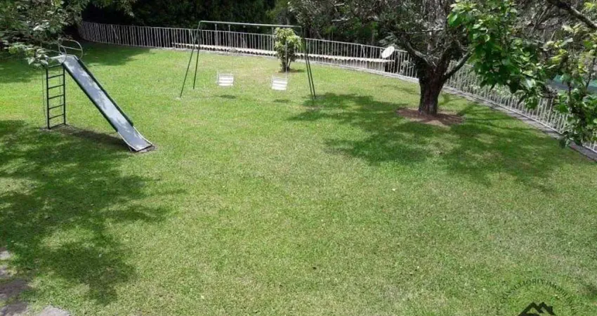 A PC Consultoria Imobiliária vende encantadora propriedade localizada muito próxima ao centro de Itaipava. Casa principal, ampla, muito confortável e ótimo acabamento, composta de 04 quartos (sendo 01 suíte com armários) salão com lareira, sala estar, sala de jantar, 04 banheiros, adega climatizada, lavabo, bar com lareira e revestimento em madeira, cozinha ampla, lavanderia, dependência empregada, roupeiro, aquecimento a gás, área serviços; garagem coberta para 05 carros. Casa hóspedes com 05 quartos, sala, cozinha, banheiro;02 casas caseiros, sendo 01 casa com 03 quartos e outra com 01 quarto; Jardim totalmente gramado e arborizado, pomar, riacho cortando a propriedade; Área lazer com piscina, sauna a lenha, salão de jogos, campo de futebol, árvores frutíferas, churrasqueira; Terreno com excelente topografia medindo 17.000m² e área construída de 860m².