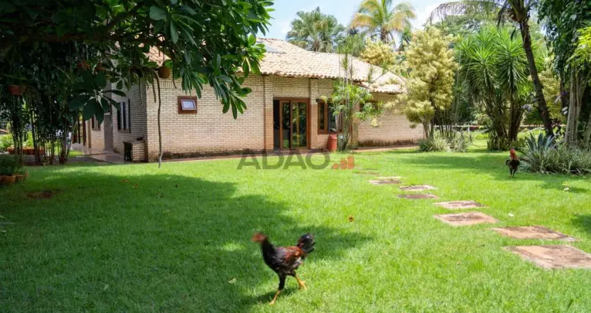 Casa térrea com 320m², o imóvel 5 quartos sendo 4 suítes, lago de carpa com bangalô com 1 suíte para dar um charme no seu final de semana. A chácara acompanha pomar, paisagismo exuberante, galinheiro, alarme, ar condicionado, área de serviço completa com armários, escritório com armário, quartos equipados com armários e closet para sua comodidade. Banheiro para empregada, cozinha americana e gourmet, despensa e escritório. A casa dispõe também de um espaço gourmet, fogão a lenha e cooktop, garagem, gramado, hidromassagem, home office, interfone, jardim de inverno, lavabo, lavanderia e muito mais. A piscina de tamanho perfeito para os dias de verão em família não vai decepcionar e a suíte com vista privilegiada traz sofisticação e exclusividade.