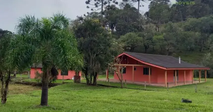 Terreno de 8.650 m², com uma casa de alvenaria de 105,3 m², contendo 3 quartos, sendo uma suíte, sala ampla com lareira, copa e cozinha arejada e banheiro. Conta ainda, com uma bela varanda em alvenaria com 86,5 m² e churrasqueira para bons momentos em família. Acabamento do piso em cerâmica, forro em madeira e tela mosquiteira em todas as janelas. Imóvel completamente cercada com tela, palanques em concreto e baldrame. Internet fibra ótica passando na frente do terreno. Água encanada da prefeitura e possui um olho dágua dentro do terreno. Venha conhecer, agende sua visita ligue FIRME 41 agora mesmo.