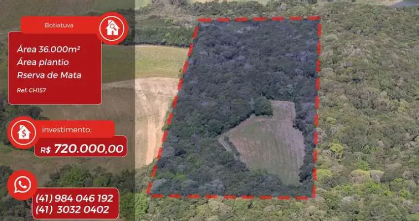 Excelente imóvel para formação de chácara, com área para plantio, reserva de mata e acesso exclusivo para a área.