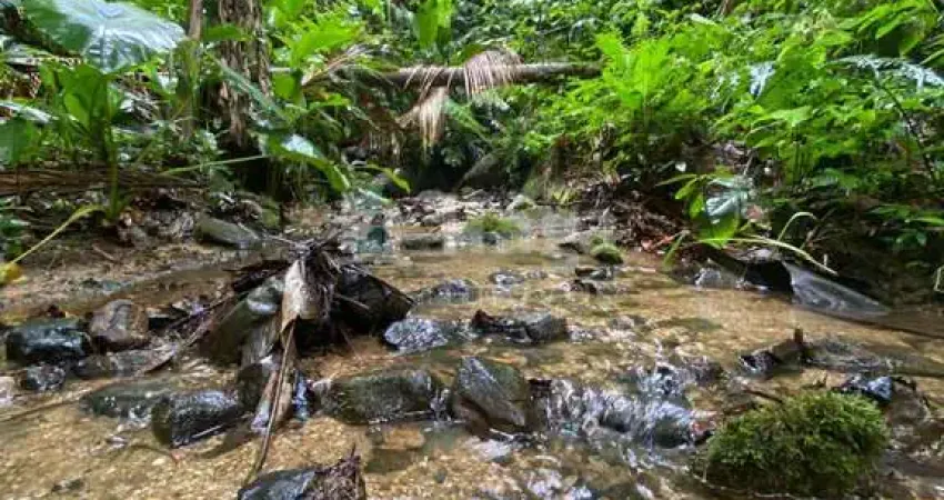Possui bananeiras, palmito e vegetação nativa, mantendo a área preservada e cercada por mata fechada — perfeita para quem valoriza tranquilidade e privacidade.
